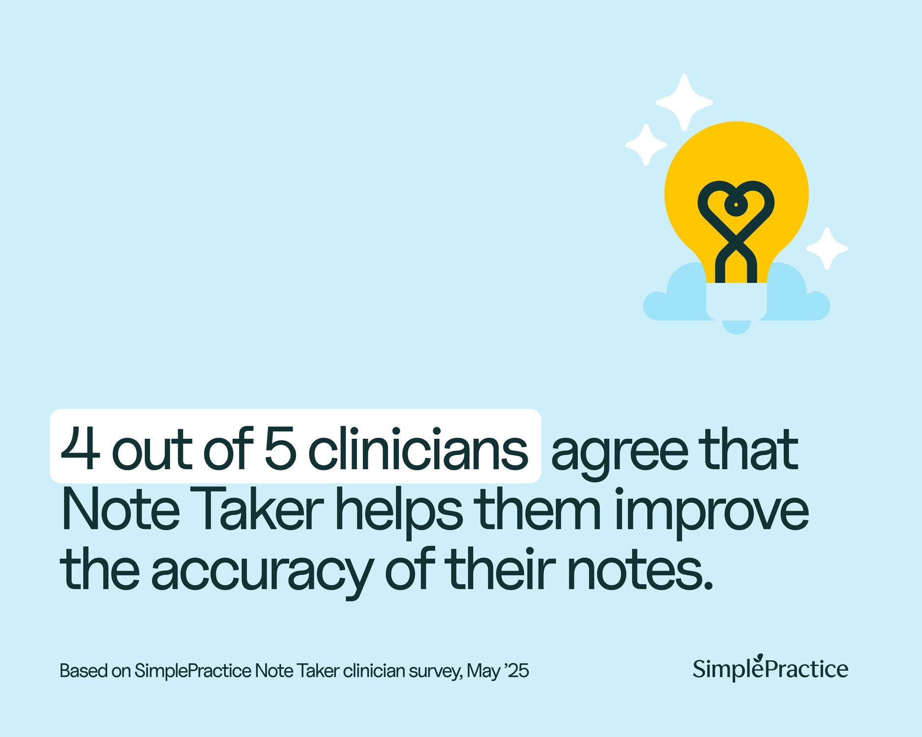 Note Taker, or any other AI-powered functionality SimplePractice may introduce in the future, will be designed to enhance and supplement clinicians’ work. Our mission is to help clinicians thrive, and AI is just another tool we’re using to better support clinicians in their day-to-day job and running their practice.