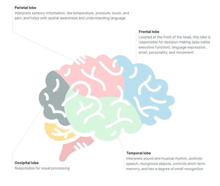The brain’s parietal lobe interprets sensory information, like temperature, pressure, touch, and pain. It also helps with spatial awareness and language comprehension.